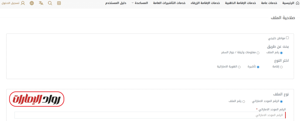 • اختيار الاستعلام بالرقم الموحد الاماراتي.