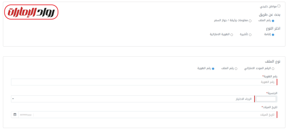 - الضغط على خيار الهوية الإماراتية من خيارات النوع.