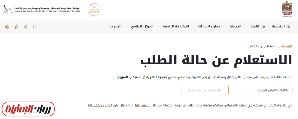 تتوفر خدمة الاستعلام عن الهوية برقم الطلب عبر موقع الهيئة الاتحادية للهوية والجنسية والجمارك وأمن المنافذ، وهي واحدة من الخدمات التي حرصت الهيئة على توفيرها دون الحاجة إلى تسجيل الدخول حتى يتمكن جميع المواطنين والمقيمين من معرفة حالة طلباتهم واستكمال الإجراءات بسلاسة.