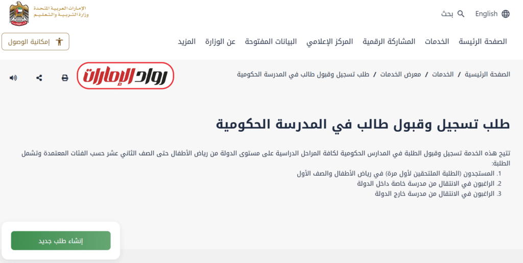 • المتابعة إلى خدمة تسجيل وقبول طالب في المدرسة الحكومية.